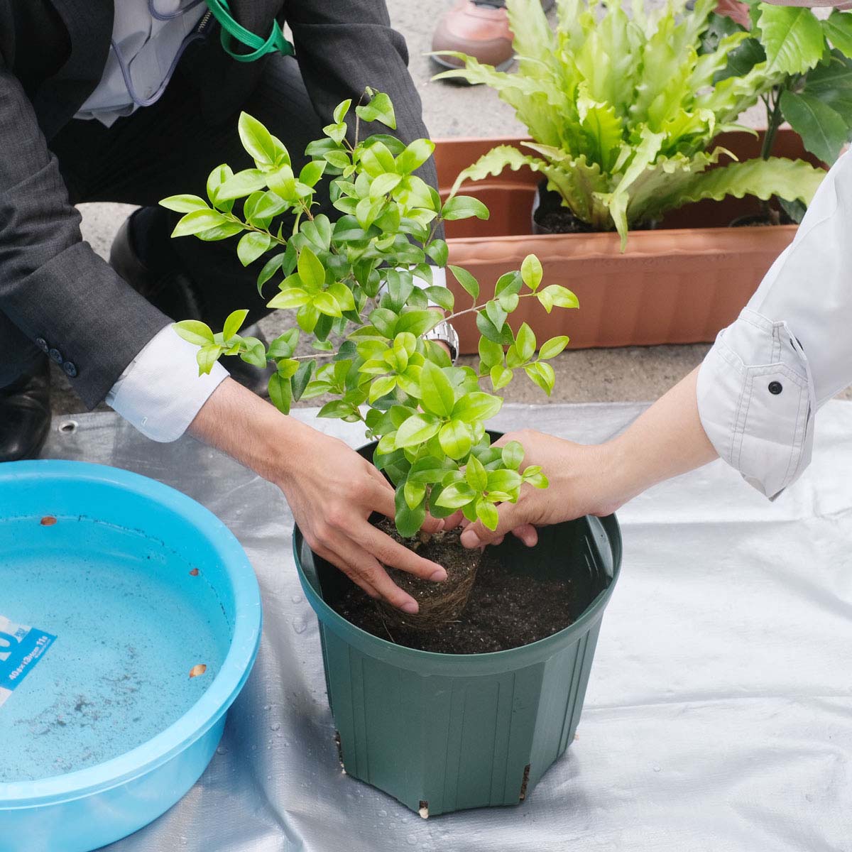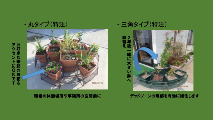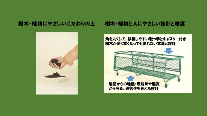 主役は森づくりに用いられる樹木の苗木です。人々のライフワークの中で樹木のポット苗を小さい植木鉢に植栽して、樹木を育て、約2年後に生長した苗木を必要な場所に植樹や、大きな鉢に鉢替えをしてグリーンループ(樹木の循環)できます。