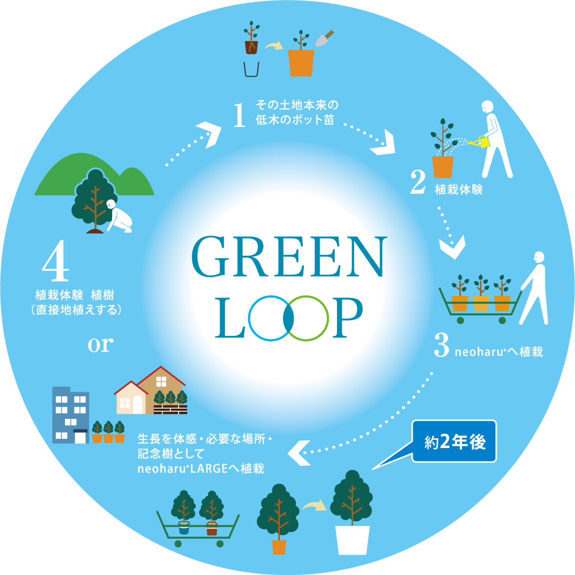 1 奥の苗木は、2年間大切に育てていただいたneoharu®です。